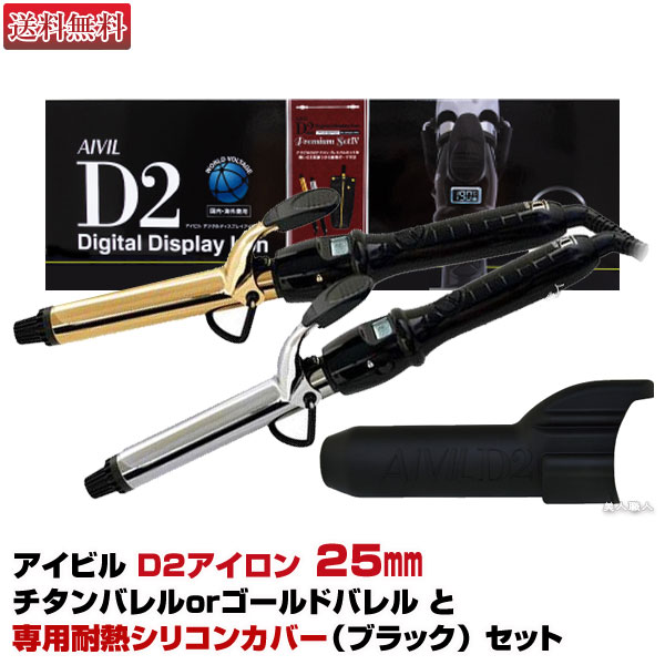 【ヘアアイロン】【セット品】Aivil アイビル D2アイロン 25mm 国内・海外兼用(ワールド ヴォルテージ)【選べる!チタンバレルかゴールドバレル】とD2アイロン 耐熱シリコンカバー【ブラック】セットトリコインダストリーズ【送料無料】【正規品】