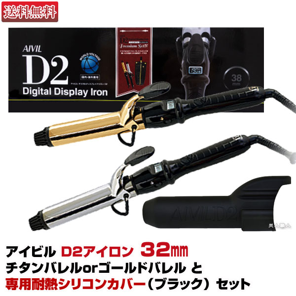 【ヘアアイロン】【セット品】Aivil アイビル D2アイロン 32mm 国内・海外兼用(ワールド ヴォルテージ)【選べる!チタンバレルかゴールドバレル】とD2アイロン 耐熱シリコンカバー【ブラック】セットトリコインダストリーズ【送料無料】【正規品】