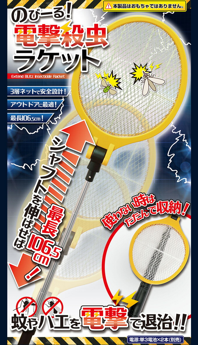 ハエたたき 電気 ハエ叩き のびーる!電撃殺虫ラケット 電撃殺虫器 屋外 室内 害虫退治 蚊 対策 コバエ 害虫駆除 蚊取り器 電池式 ハエ取り 蠅