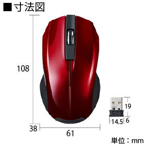(アルカリ単3乾電池使用時)●サイズ(mm):・マウス:W61×D108×H38・レシーバー:W14.5×D19×H6●重量(g):マウス 53(電池含まず)、レシーバ 2●対応機種:各社Windows搭載(DOS/V)パソコン、Apple Macシリーズ、Surface Pro(2017)※標準でUSBポート(Aタイプコネクタ)を持つ機種※Macシリーズでは、サイドボタンはご使用になれません。