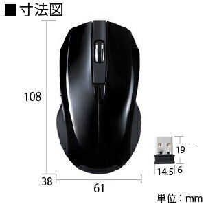 (アルカリ単3乾電池使用時)●サイズ(mm):・マウス:W61×D108×H38・レシーバー:W14.5×D19×H6●重量(g):マウス 53(電池含まず)、レシーバ 2●対応機種:各社Windows搭載(DOS/V)パソコン、Apple Macシリーズ、Surface Pro(2017)※標準でUSBポート(Aタイプコネクタ)を持つ機種※Macシリーズでは、サイドボタンはご使用になれません。