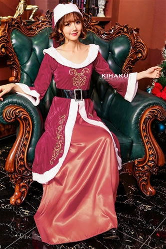 ロングドレスでゴージャスクリスマス!ゴージャスエレガントに着こなせるクリスマス女王サンタコスチュームです♪